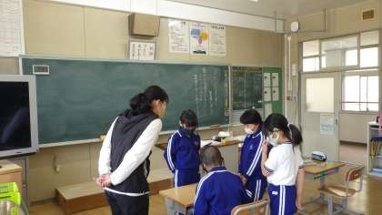 4年生の国語の学習では、「4年生の1年間で頑張りたいこと」をカードに書き出して整理していました。自分のカードの整理の理由を友達に伝え、言葉でのやり取りをつなげる学習です。どんな共通点に目をつけたか、一所懸命に伝え合っていました。