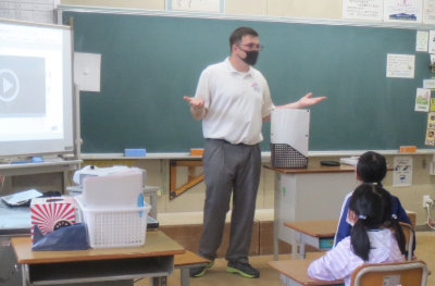 3年生から始まる外国語活動の学習支援として、昨年度に引き続き、ALTのカイル・トビン先生が金曜日の授業に入ります。子どもたちは、カイル先生からの問いかけに元気よく答え、英語に楽しく親しんでいました。