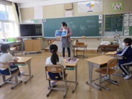 朝の活動の時間に、1〜4年生を対象に本の読み聞かせを行いました。子どもたちは、本の世界に入り込み、夢中になって聞いていました。