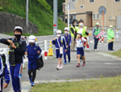 「ゼロの日」には、地域の方々が、学区の交差点や車通りの多い箇所で立哨活動を行い、子どもたちや自動車運転者に交通安全を呼びかけていただいています。いつも朝早くからありがとうございます。