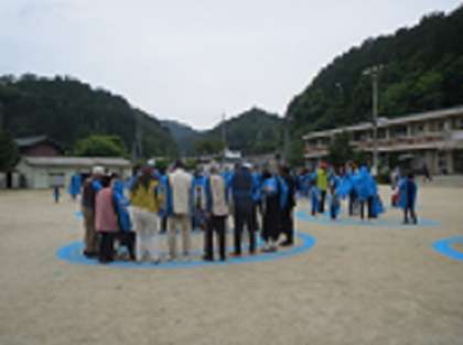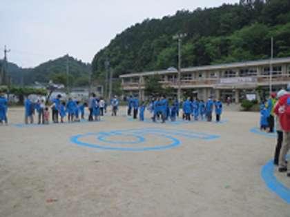 今年度、本校は創立150周年を迎えました。その記念事業の一環として、今日の愛校作業の後に、子どもたちと保護者、卒業生、地域の方々、教職員で「しきしま150」の人文字を作り、航空写真を撮影しました。雨が心配されましたが無事に撮影を終え、節目となる記念写真を残すことができました。