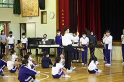全校朝会で、5・6年生が、音楽で学習したメキシコ民謡「リボンのダンス」を器楽演奏しました。木琴、リコーダー、エレクトーン、小太鼓などを使った5・6年生の真剣な演奏によって、全校のみんなが朝からさわやかな気持ちになりました!