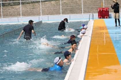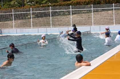 3・4年生が、体育の授業で水泳学習を行いました。4年生にとっては1年生以来2年ぶり。3年生にとっては入学以来の初めての水泳学習です。子どもたちは、だるま浮きをしたりバタ足をしたりして、水の感触を存分に楽しんでいました。