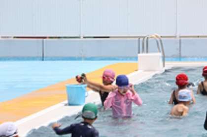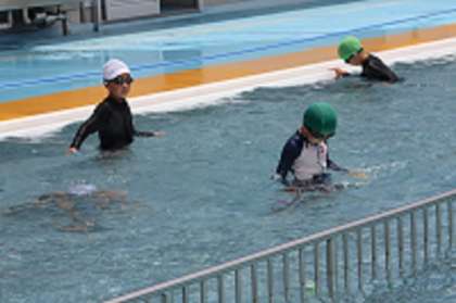 1・2年生が、体育の授業で水泳学習を行いました。小学校のプールは初めてとなる子どもたち。水中宝探しゲームでは、夢中になって水中のお宝を見つけ大喜びしていました。
