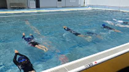 5・6年生が、体育の授業で水泳学習を行い、「水泳カード」に示された基礎的な運動(けのび、石拾い等)を行いました。水温があまり上がらず、子どもたちは少し寒がりながらも久しぶりの水泳を楽しんでいました。