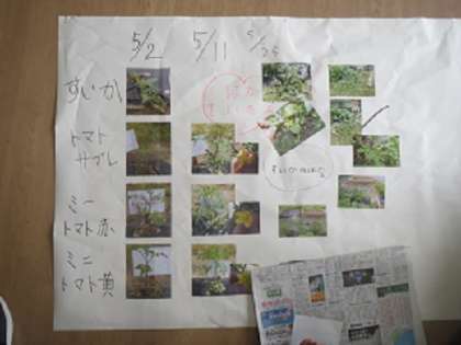 6/15(水) 「野菜を育てているよ 〜さくら学級〜」 公開日 2022/06/15 更新日 2022/06/15 お知らせ さくら学級がお世話している「さくら農園」には、たくさん種類の野菜が育っています。子どもたちは野菜の成長を観察し、その記録を模造紙にまとめています。育てた野菜は、「さくら市場」で販売します。収穫が待ち遠しいです!