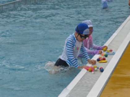 3・4年生が、体育の授業で水泳学習を行いました。水中で輪をくぐったり、水中の小石を拾ったりと、水泳検定の項目を1つずつ挑戦していました。1つずつ項目を合格して検定の内容がだんだん難しくなるほどに、子どもたちは意欲満々に取り組んでいました。