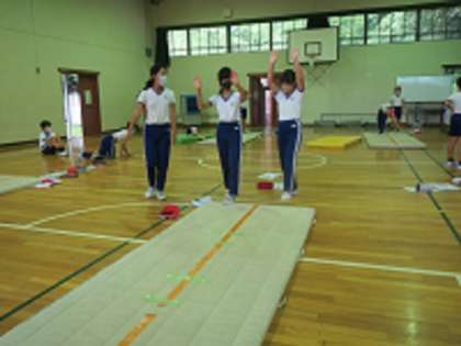 5・6年生が体育の授業で、倒立や側方倒立回転などのマット運動を行いました。特に側方倒立回転は難しそうでしたが、子どもたちは、どうすれば腰が曲がらずにまっすぐ回転できるのか、友達同士で気づいたことを話し合いながら粘り強く挑戦していました。