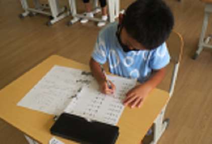 1年生が、国語と算数の月例テストを行いました。子どもたちは合格をめざし、一生懸命に問題を解いていました。小学校に入学してもうすぐ半年になりますが、子どもたちの学習への集中力は着実に高まってきており、確かな成長が感じられました。
