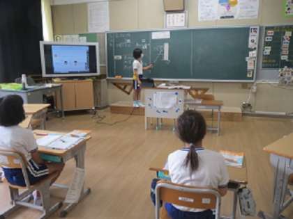 4年生が、算数の授業で、商が2けたとなるわり算をひっ算で解く学習を行いました。解き方を理解した子が、計算の仕方をみんなに理解してもらおうと、指示棒を使って一生懸命説明していました。説明を聞いた子どもたちは「なるほど!」と声を上げて理解することができ、みんなで学び合う姿が見られました。