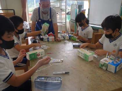 6年生が、豊田市のものづくりサポートセンターから講師を招き、2回目のものづくり教室を行いました。今回は、おもちゃづくりを通して、クランクの仕組みを学びました。子どもたちは、完成させた「からくりおもちゃ」が思い通りに動かすことができ、達成感を味わっていました。