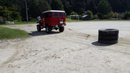 夏休み明けの愛校作業以降、校内整備員さんが運動場の草刈りを進めてくださり、今日から、車に大きなタイヤをつけて牽引し、運動場を均してくださいました。子どもたちは作業の様子を見て大喜びし、午後のフリータイムは元気に駆け回っていました。