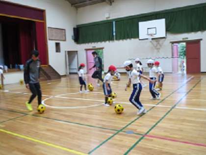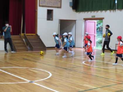 1・2年生が、名古屋グランパスの講師を招いて「ボールクリニック(サッカー教室)」を行いました。ドリブルしながら鬼ごっこをしてボールに慣れ親しんだ後、ミニゲームをしました。ゴールを目指して夢中になってボールを追いかけ回る姿がとてもかわいらしかったです。