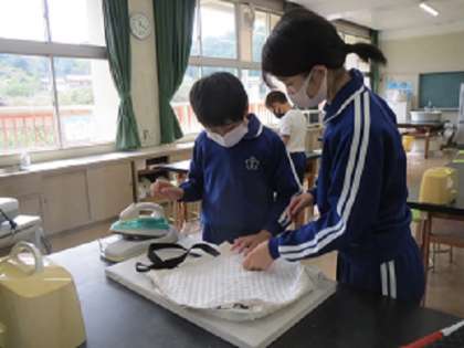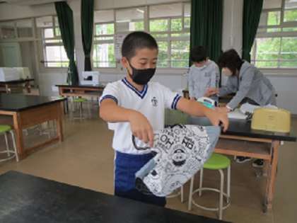 6年生が、家庭科の授業で布製のトートバッグを製作しました。子どもたちは、それぞれ好きな布柄を選び、ミシンやアイロンを使って丁寧に製作しました。出来上がったお気に入りのバッグは修学旅行で使う予定であり、修学旅行の楽しみの1つになりました。