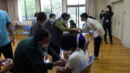 4年生が、ふるさと学習(総合的な学習)で、敷島会館に出掛けて、地域の高齢者の方と交流活動を行いました。高齢者の方に楽しんでいただこうと、リコーダーや鍵盤ハーモニカによる演奏や、「ボッチャ」と「魚釣りゲーム」の企画、「お味噌汁の人気の具材当てクイズ」などを行いました。子どもたちも地域の皆様も笑顔あふれる時間となりました。