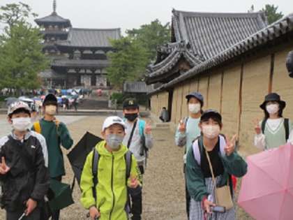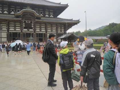 1日目は小雨が降る中、奈良の法隆寺、東大寺、奈良公園、春日大社を見学しました。特に、実際の東大寺を目の当たりにした子どもたちは、その迫力に魅了されていました。