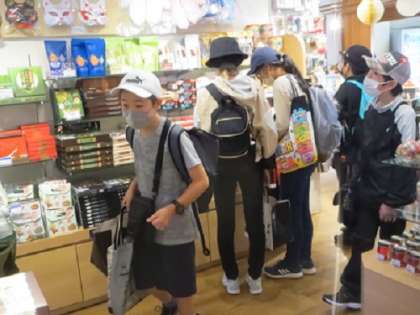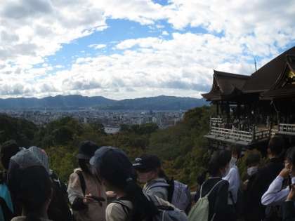 清水寺では、たくさんのお土産屋をめぐり、時間いっぱいまで買い物を楽しみました。その後、レストランで昼食を食べ、清水寺を見学しました。清水寺の舞台から見下ろす京都市街の景色の美しさに、子どもたちは改めて京都の魅力を感じていました。清水寺は、たくさんの観光客で大変にぎわっていましたが、ガイドさんの上手な案内のおかげでスムーズに見学でき、快適に過ごせました。