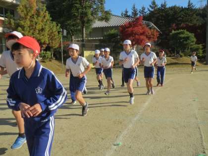 マラソン大会に向けた練習が始まりました。朝の活動の時間に、低学年は6分、中学年は8分、高学年は10分、各自のペースでトラックを走りました。力を抜かずに一生懸命走り切った子どもたちは、とてもさわやかな表情をしていました。