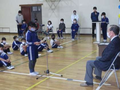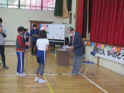 旭地区出身で歯科技工士に従事される方が、今年も敷島っ子のために本を寄贈してくださいました。本日、この方をお招きして、図書委員会主催で「感謝の会」を開催しました。会の中で、子どもたちから、寄贈された本を読んだ感想と感謝の気持ちを伝え、図書委員会から感謝状を贈りました。子どもたちは、「これまで以上にたくさん読書したい!」と意欲を高める姿が見られました。