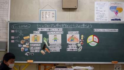 旭中学校の栄養教諭の先生をお招きして、市の給食指導カリキュラムの一環で、3年生が赤・緑・黄の3色の食べ物の栄養素やその効果について学習しました。5時間目の授業でしたので、栄養教諭の先生が用意された今日の給食の献立やその食材を使った学習に積極的に発言をしていました。元気な体をつくることを自分からできるように「きらいなものでも頑張って食べるための作戦」をみんなで出し合いました。そのうえで、明日から自分が考えた食事の目標を達成するように頑張っていきます。