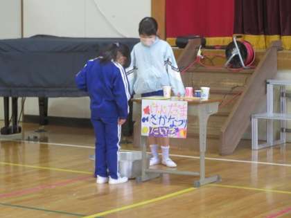 2年生が生活科の授業で、1年生の子を招いておもちゃ祭りを開催しました。「1年生に喜んでもらいたい」という思いをもった2年生が、自分で作ったおもちゃの遊び方を丁寧に教えてあげていました。1年生は大喜びで遊んでおり、おもちゃ祭りは大成功でした。