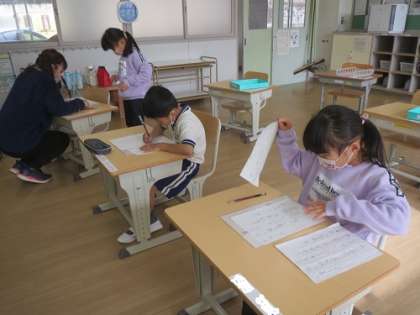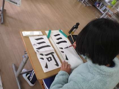 今日は、校内書初め大会を行いました。子どもたちは、これまで練習してきた成果を発揮しようと、真剣な表情で本番に臨みました。字の形に気を付けながら一画一画に集中して書いた字から、子どもたちの一生懸命さが伝わってきました。
