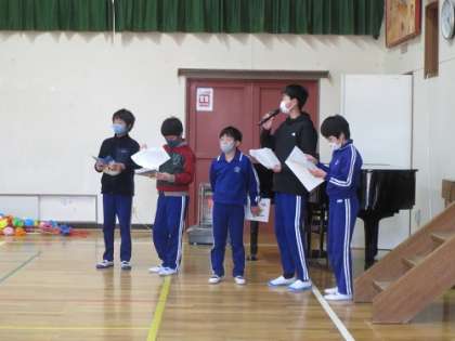 本日、在校生が、明日に迫った卒業生を送る会の入退場の練習を行いました。5年生が進行役となって、呼びかけの仕方や隊形移動について、1〜4年生にてきぱきと指示をしていました。送る会のリーダーである5年生は、緊張しながらも自分たちの手で予定通りに練習をやり遂げたことで自信をつけた様子がうかがえました。