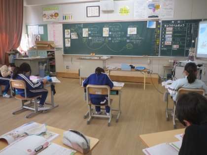 2年生が道徳の授業で、教科書「7つの星」をもとに、心の美しさについて考えました。女の子の行動によって木のひしゃくが金の星に変わった場面について、子どもたちは「女の子が、自分のことを後回しにしてみんなに優しくしてあげたから」と、女の子の心の美しさを感じることができました。
