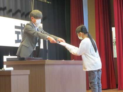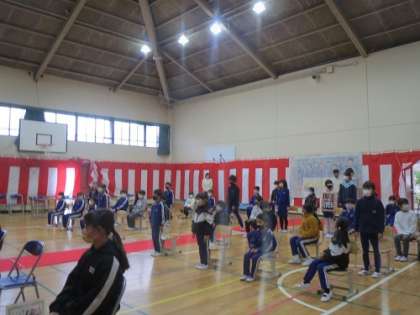 卒業式の全校練習を行う前に、これまで子どもたちがすばらしい結果を出した各種コンクール等の表彰を行いました。書き初め、読書感想画、習字などにおいて、たくさんの敷島っ子たちが表彰を受け、その活躍を全校で称えました。