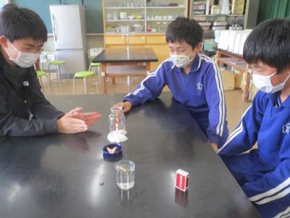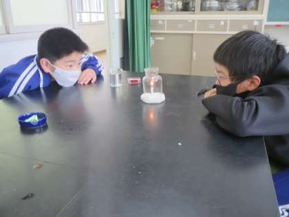 6年生が、理科の授業で実験を行い、ろうそくが燃える時の空気の様子を調べました。実験が大好きな子どもたちは、ろうそくの炎と空気の流れを真剣なまなざしで見つめていました。