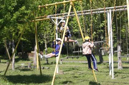 遊具で遊んだり一輪車に乗ったり、生き物を探したり、いろいろな遊びを学年の垣根を越えて仲良く遊んでいます。