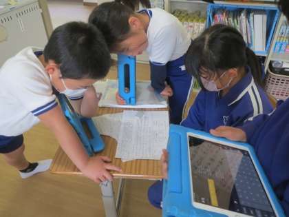 4年生が、来週の縦割り班による学区探検「敷島っ子アドベンチャー」に向け、班で楽しむ企画を準備中です。子どもたちは、仲間とアイデアを出し合いながら、遊びのルール決めやクイズの賞品作りに張り切って取り組んでいました。
