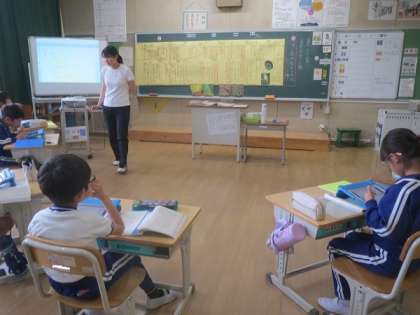 3年生が、国語の授業で「自然のかくし絵」を学習しました。子どもたちは、各段落に登場する虫たちの保護色の役割を本文から探して発表し合いました。学習を通して、敵から身を隠すために、虫によっていろいろな保護色があることを知り、自然界の不思議さに魅力を感じていました。