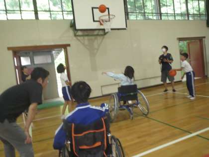 6/9「パラアスリート教室 その2 〜5・6年生〜」 公開日 2023/06/09 更新日 2023/06/09 お知らせ 「パラアスリート教室」の後半は、体育館で「車いすバスケット」や「ボッチャ」を行いました。最後は湯上選手も入って車いすリレーを行いました。子どもたちは、体験を通してパラスポーツの魅力を存分に味わいました。