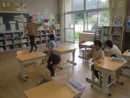 2年生が、国語の授業で「なまえをみてちょうだい」を学習しています。こどもたちは、主人公のえっちゃんや、きつね、牛、大男などの役を分担し、それぞれ演技をしながら物語の各場面の様子を読み取っていきました。役になり切って表現豊かに演技をする友達に対して、「すごい上手!」「おもしろい!」と褒めたたえる声が多く聞かれました。