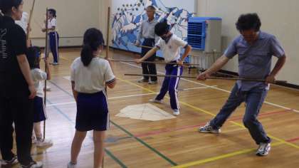 6/20「棒の手練習〜全校活動〜」 公開日 2023/06/20 更新日 2023/06/20 お知らせ 毎週火曜日の朝の活動は棒の手練習です。11月に行われる運動会での発表に向けて、今日は2回目の練習でした。各流派に分かれて、運動場や体育館で、地域講師の方からそれぞれの型をご指導いただきました。上級生が下級生に見本を見せたり手を取って動きを教えたりする様子があり、短時間でしたがよい活動ができました。