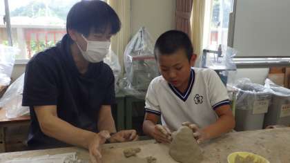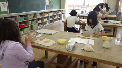 6/21「土鈴をつくろう〜5年生〜」 公開日 2023/06/21 更新日 2023/06/21 お知らせ 5年生は図工の授業で焼き物に挑戦しています。「My土鈴をつくろう」をテーマに思い思いの作品をつくりました。「どんな形にするか考えながらつくるのが楽しい」と夢中になってつくり、「サメちゃん」、「カップケーキ姫」、「僕だけのアンコウ」…などユニークな作品が出来上がりました。授業の終わりには釉薬の色を選びました。焼成は業者に依頼します。焼き上がりが楽しみです。