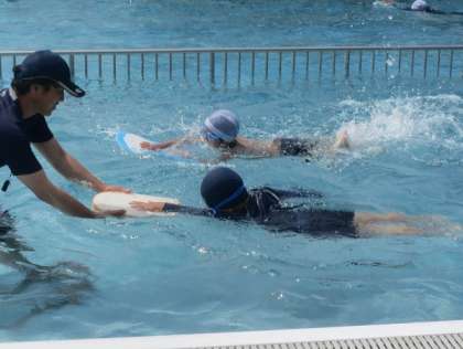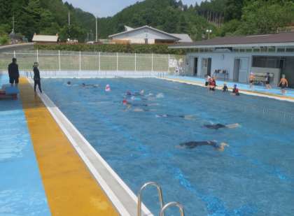 6/28「水泳学習 〜1・2年生、5・6年生〜」 公開日 2023/06/28 更新日 2023/06/28 お知らせ 1・2年生と5・6年生が、体育の授業で水泳学習を行いました。それぞれ技能レベル別に分かれ、1・2年生は輪くぐりやバタ足練習、5・6年生は平泳ぎの練習を行いました。強い日差しの中、子どもたちはとても気持ちよさそうに水に親しんでいました。