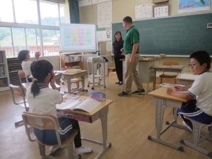 5年生が外国語の授業で、アルファベットのビンゴゲームを行いました。子どもたちは、3×3の正方形のマスの中に好きなアルファベットを書き込んでビンゴを作った後、発音されたアルファベットを正しく聞き取りながらゲームを進めていきました。「N」と「M」の発音の違いに苦戦する場面もありましたが、ゲームを通して、正しく聞き分けられるようになりました。