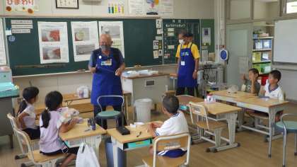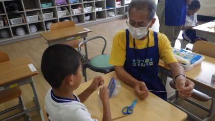 2年生が2・3・4時間目に、豊田市ものづくり教育プログラムのサポーターさんに教わり、「カスター犬」「多目的ギロ」「コップガエル」をつくりました。牛乳パックや爪楊枝、ペットボトルキャップなど身近な材料を使って楽しいおもちゃを作り、出来上がったおもちゃで音を鳴らして遊ぶことができました。つくることの楽しさや完成の達成感を味わった2年生の子どもたちは誇らしげにおもちゃを見せてくれました。
