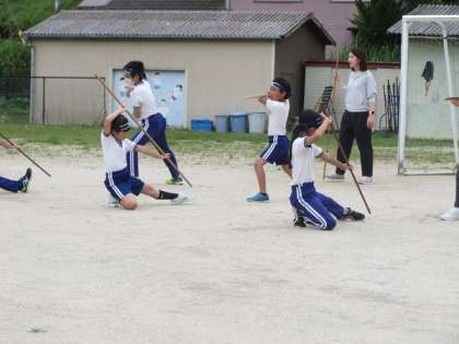7/11「棒の手練習 〜全校〜」 公開日 2023/07/11 更新日 2023/07/11 お知らせ 朝の活動の時間に、地域講師の方を招いて棒の手の練習を行いました。3つの流派に分かれた子どもたちは、朝から元気な掛け声を出し、しっかりと腰を落とすことを心掛けて練習しました。講師さんからたくさんお褒めのお言葉をいただき、子どもたちはどんどん自信をつけてきています。
