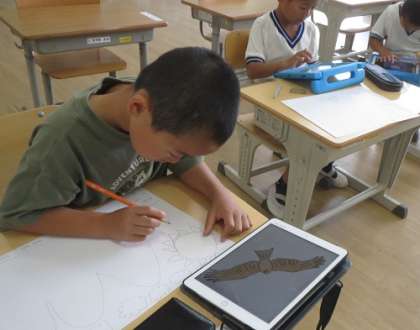 2年生が図工の授業で、「あさひ根っ子の会」「旭木の駅プロジェクト」が募集している林育推進の啓発ポスターづくりを行いました。今日は、下書きを描き、子どもたちはイノシシやトンビ、山など思い思いに想像した緑豊かな山の様子を描きました。中には、学習用タブレットで自分の家の周りの自然を調べて描く子もいました。今後、色が塗られてどんな自然が完成するかが楽しみです。