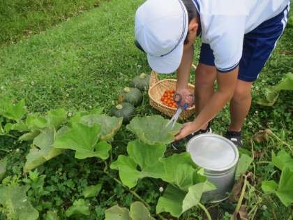 3時間目に、さくら学級が、さくら農園で育ててきた野菜を収穫しました。今年もたくさんの野菜を育てた子どもたちは、立派に育った野菜にとても満足気でした。