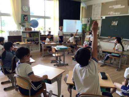 夏休み明けの初日となった今日、各学級の子どもたちは、それぞれの夏休みの思い出を発表しました。子どもたちは、夏休みの日記や作文をもとに、家族とのキャンプや川遊びなど楽しかった出来事を語り合い、夏の思い出を楽しく共有していました。