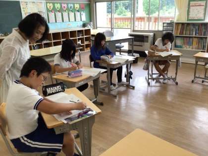 5年生が国語の授業で詩「紙風船」を学習しました。子どもたちは、詩を読んで思い思いに想像したことを音読で表現するために、間の取り方や声の大きさ、読む速さなど、実際に試し読みをしながら、工夫点をノートに書いていきました。子どもたちは、詩「紙風船」のもつ世界観を楽しみながら生き生きと学習い取り組んでいました。