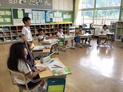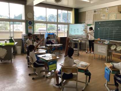 3年生が算数の授業で、重さ調べを行いました。子どもたちは、ランドセル、消しゴム、ストラップなど、量ってみたいものを見つけ、その重さを予想した後、はかりで実際に量った結果を発表しました。いろいろなものの重さの違いを知った子どもたちから、「こんなに軽いと思わなかった!」などの驚きの声が出ていました。