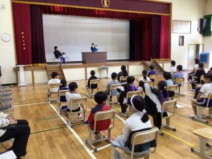 10/6「学期切り替え式」 公開日 2023/10/06 更新日 2023/10/06 お知らせ 今日で前期が終わり、10月10日(火)から後期を迎える節目として、5時間目に「学期切り替え式」を行いました。意見発表では、2人の代表児童が前期に頑張ったことや後期の目標を堂々と発表しました。その後の全校意見交流では、たくさん発言する姿が見られました。 前期の授業や行事に意欲的に取り組んだ敷島っ子たち。後期のさらなる活躍が楽しみです!