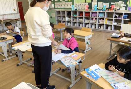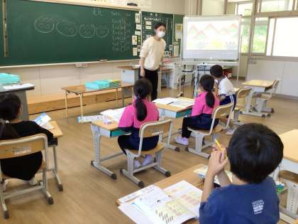 2年生が5時間目に算数の授業で、5の段の九九を学習しました。子どもたちは、九九表を見ながら元気な声で5の段を読み上げる姿から、九九を一段ずつ言えるようになっていくことの楽しさが伝わってきました。