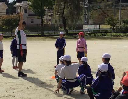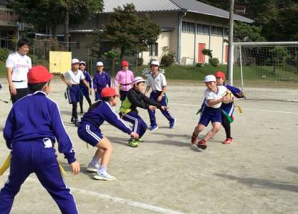 3・4年生が2時間目に、トヨタヴェルブリッツ(トヨタ自動車ラグビーチーム)による「タグラグビー教室」を行いました。前半にルールを確認し、パス練習をした子どもたちは、後半にミニゲームを行い、ラグビーらしくパスをどんどんつなげてトライを決めるまで上達しました。子どもたちは、タグラグビーの面白さを十分に味わっていました。