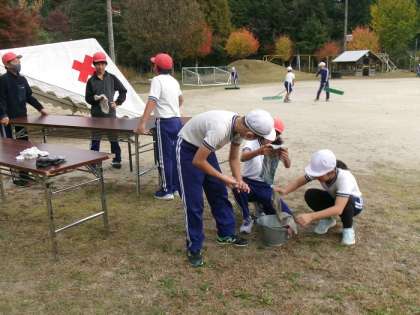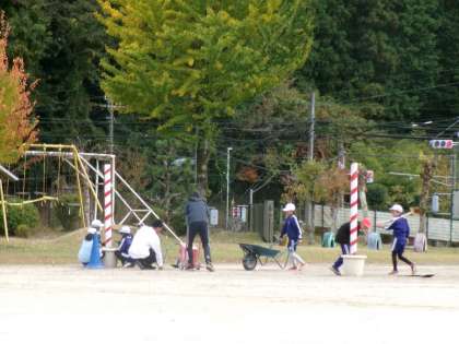 4〜6年生が、5時間目に運動会の予行練習に向けた準備会を行いました。運動場の整備や入場門の設置など、きびきびと手際よく準備することができました。